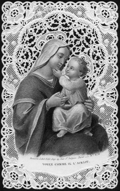 All are steel engravings printed on paper lace designed to enshrine the image; a few have been hand colored.